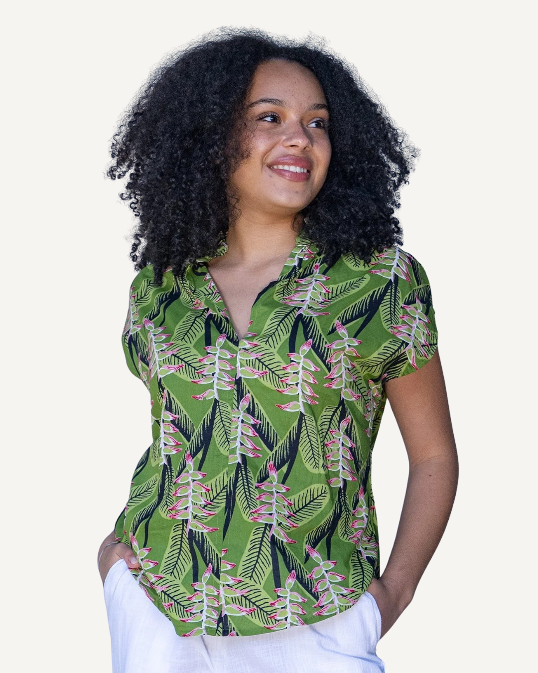 Easy, effortless and endlessly wearable, this leafy green Verdure Clare Top by Cienna Designs brings a virbant pop of colour to your everyday wardrobe. Designed with a relaxed silhouette and soft drape, it’s the kind of top that feels polished yet completely comfortable — perfect with crisp white pants, denim, or tucked into tailored shorts for warm-weather days.