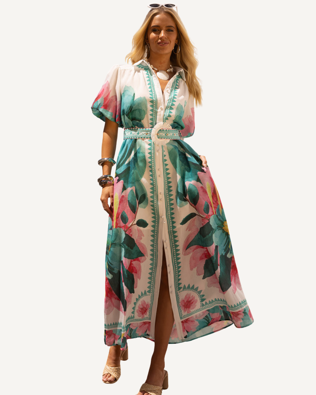 A beautifully elevated maxi designed to make an entrance, the Kirri Maxi Dress by Ave. The Label blends soft structure with flowing movement for an effortlessly polished feel. Featuring a striking floral print framed by decorative border detailing, it’s cinched at the waist with a statement belt to flatter and define. Floaty yet refined, this is the kind of piece that feels equally at home at long lunches, garden parties and destination events.
