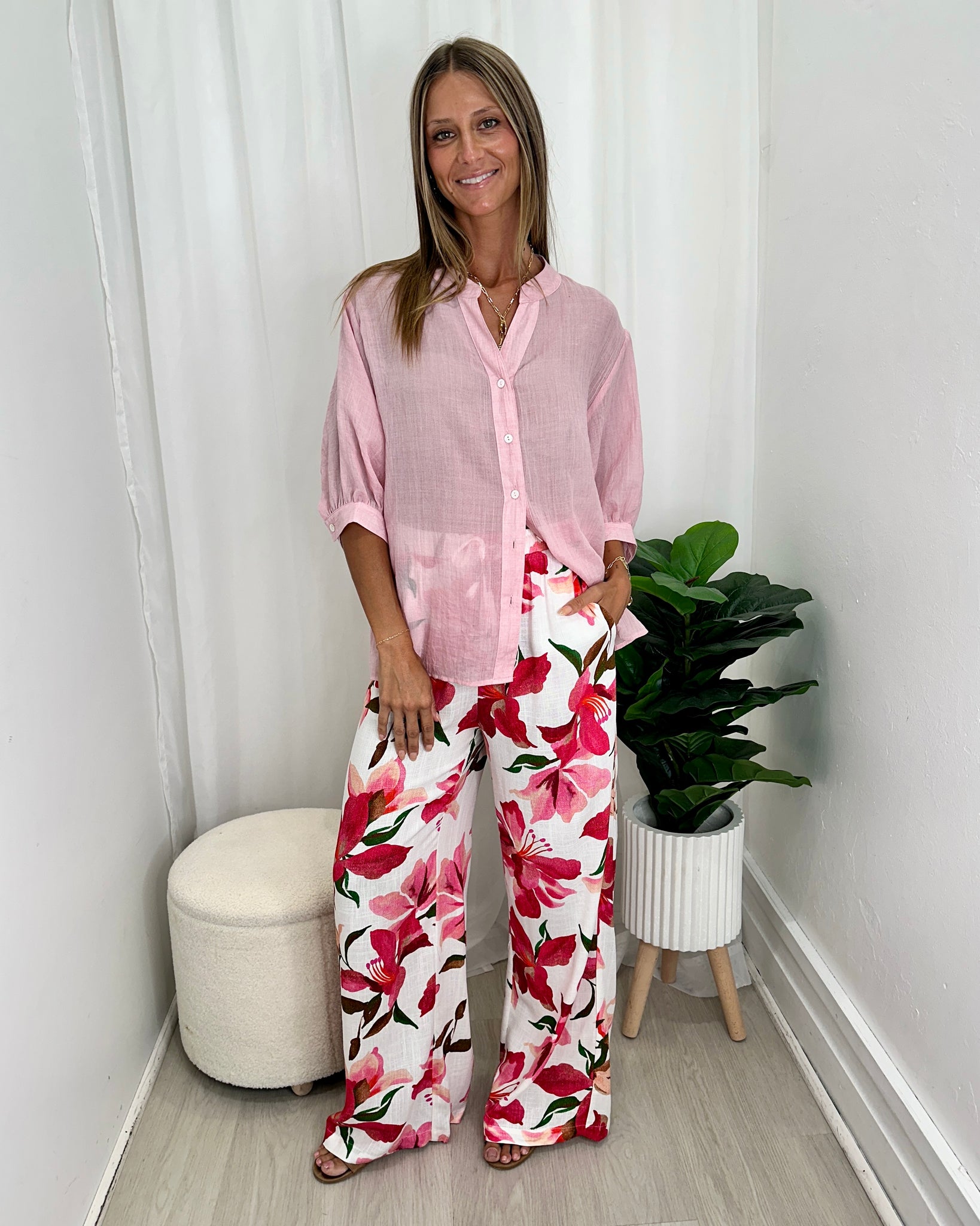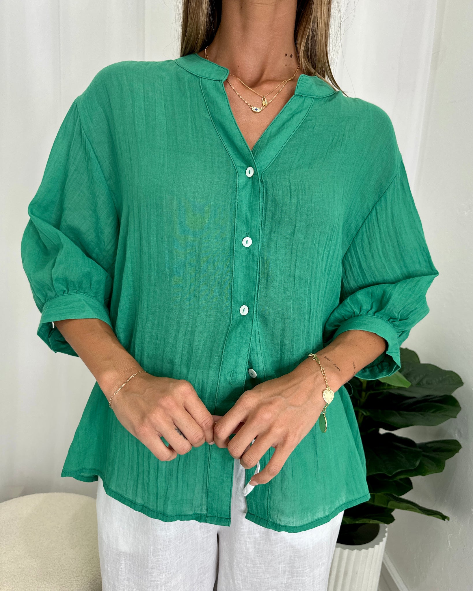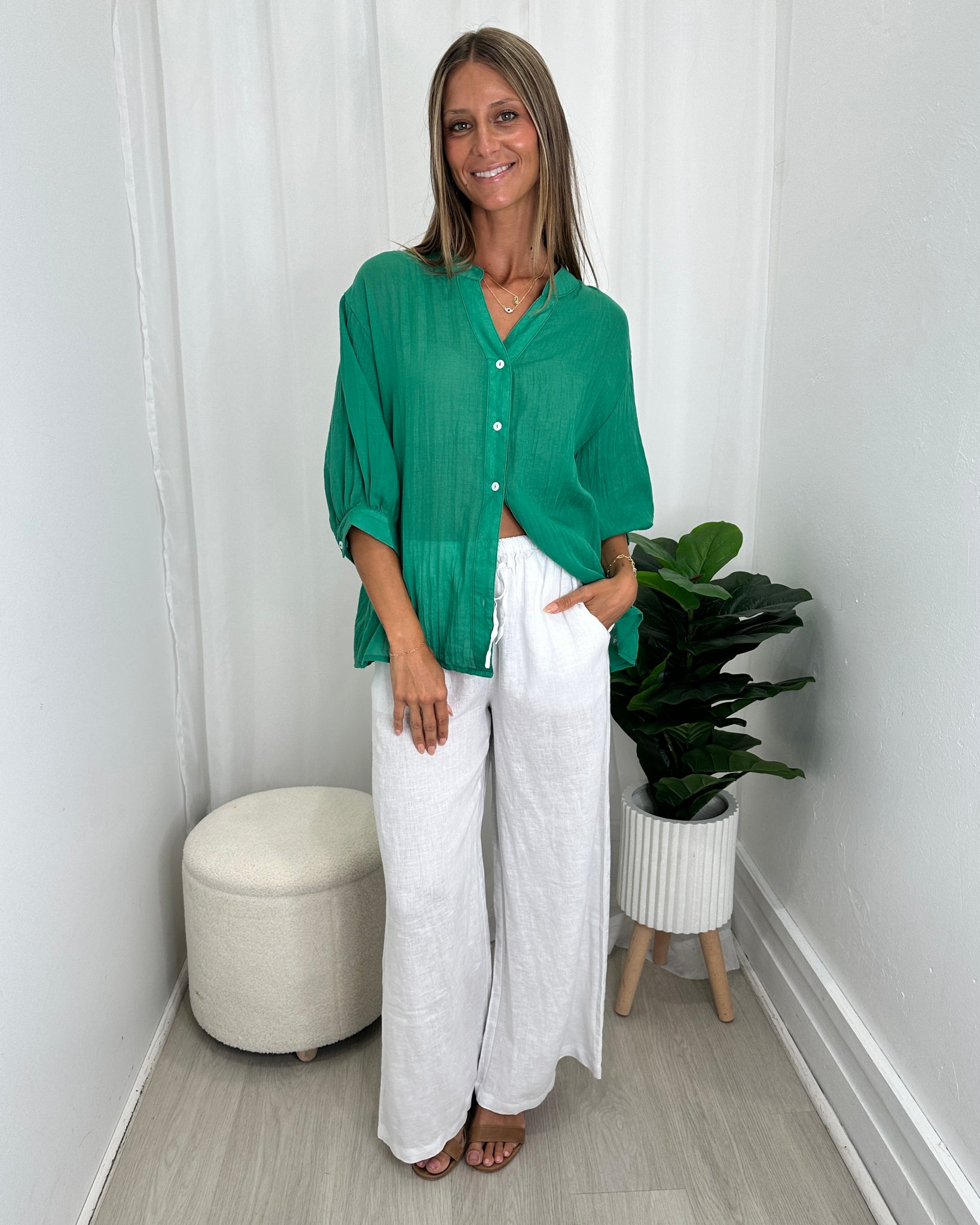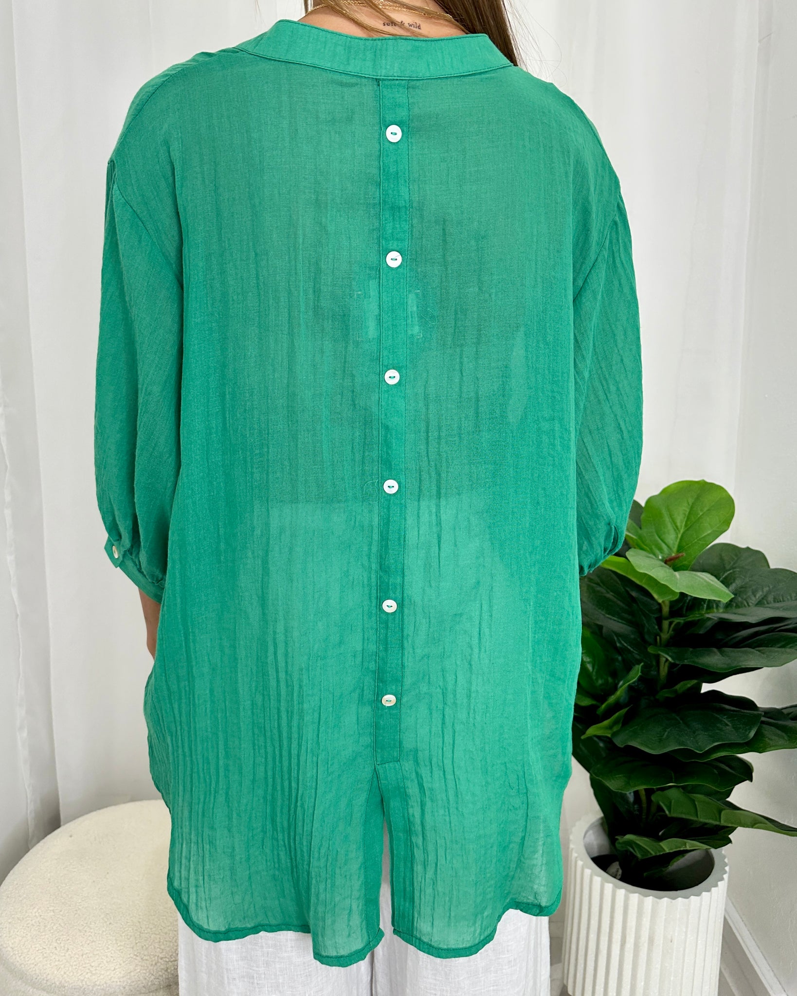 A similar style to our best selling Dallas Shirt, the Renata Shirt by Caroline Morgan is a beautiful, floaty shirt with a button down front and back. Super soft, slightly sheer material, this shirt looks great with almost any jeans, pants or shorts for a casual day to day look.