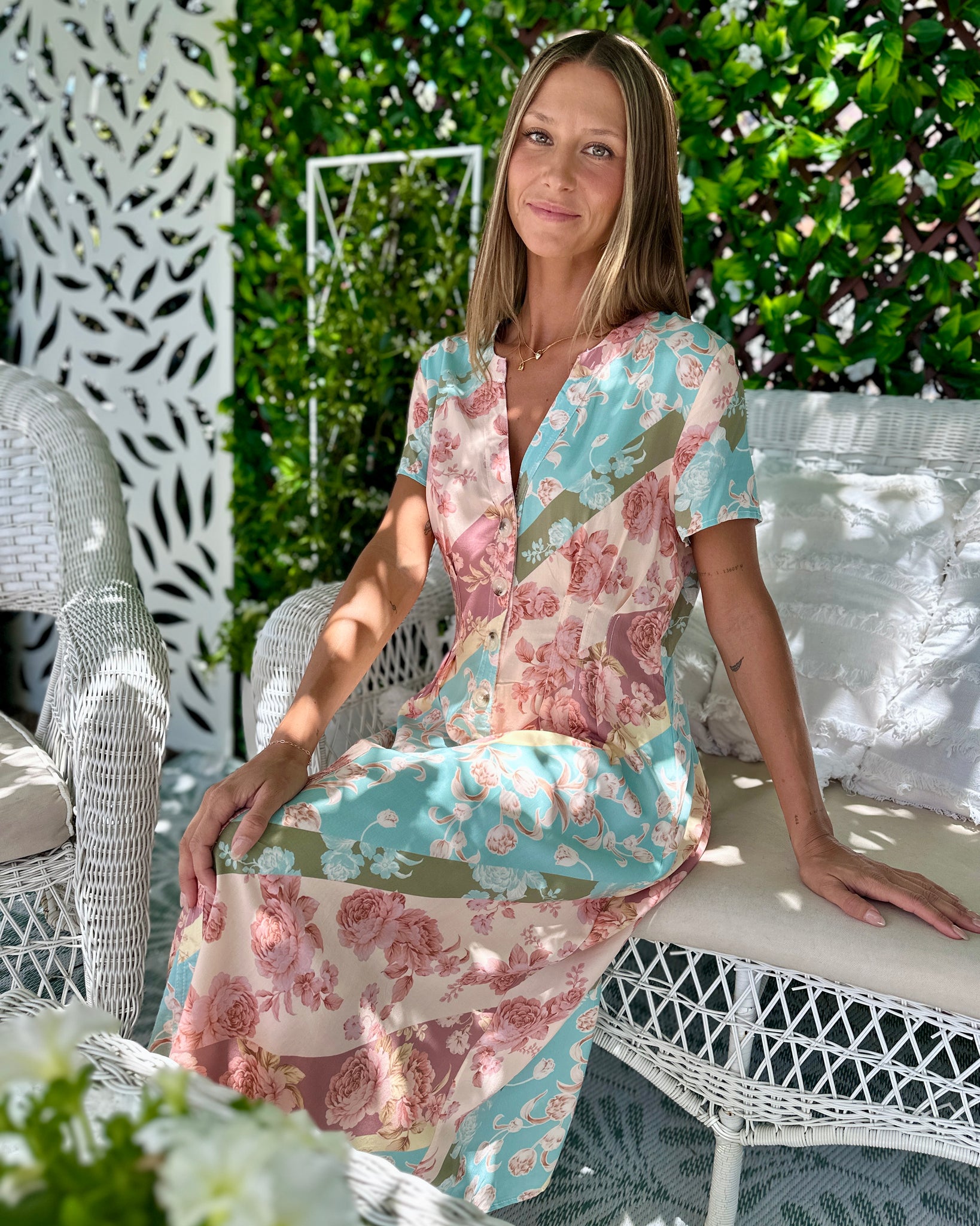 Soft, feminine, and timeless — this pastel Tetta Midi Dress by Grace & Co. is made for long lunches, garden parties, and everything in between. Featuring a flattering fit-and-flare silhouette, it cinches gently at the waist before flowing into a floaty midi skirt. The delicate pastel tones bring a dreamy, romantic feel, while the short sleeves and subtle v-neckline keep it effortlessly chic.