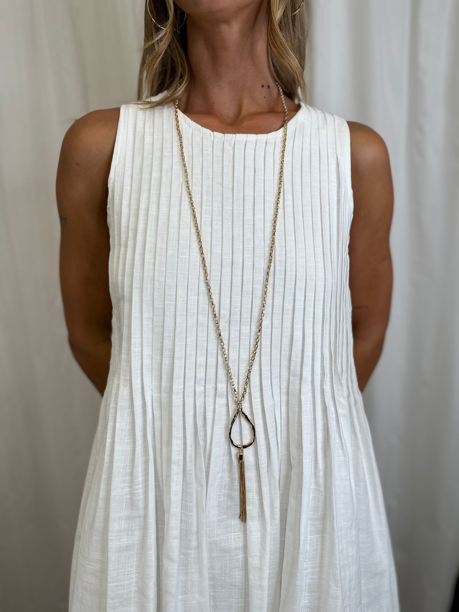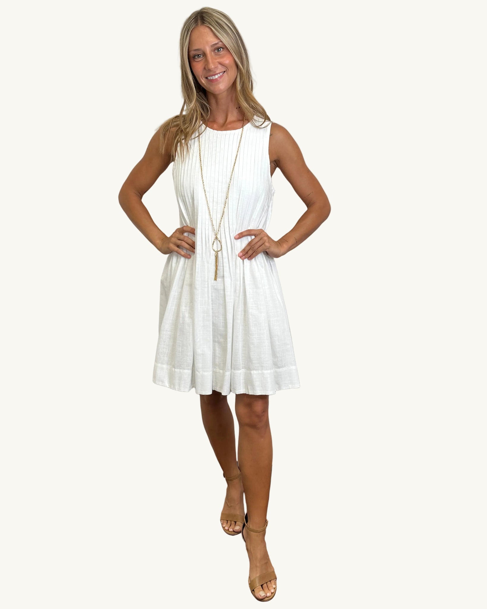 A timeless everyday classic, the Angie Short Dress by Salty Bright brings effortless elegance to your warm-weather wardrobe. Crafted from breathable, natural linen, it features a flattering knee-length silhouette and soft pleating along the bodice for gentle shape and feminine detail.
