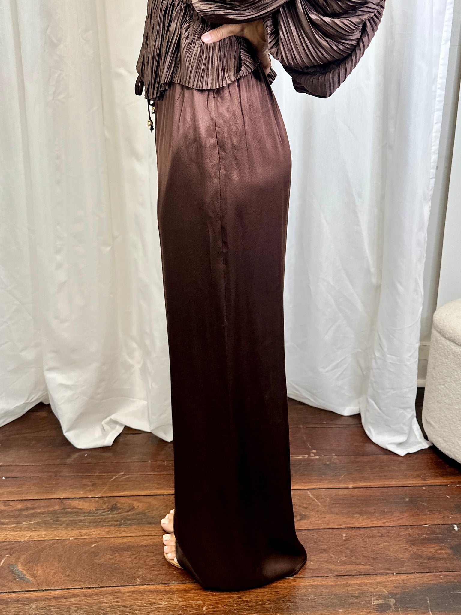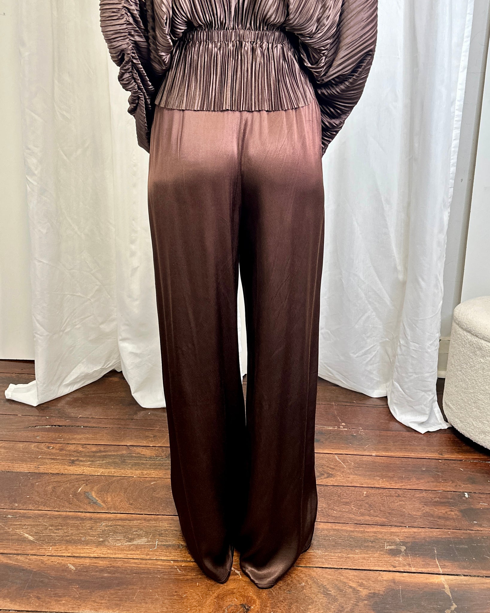 Relaxed, refined and undeniably luxe — the Hera Pants are your answer to elevated ease. Crafted in a rich chocolate satin with a fluid drape, they move beautifully with every step while offering that polished, put-together finish we love.