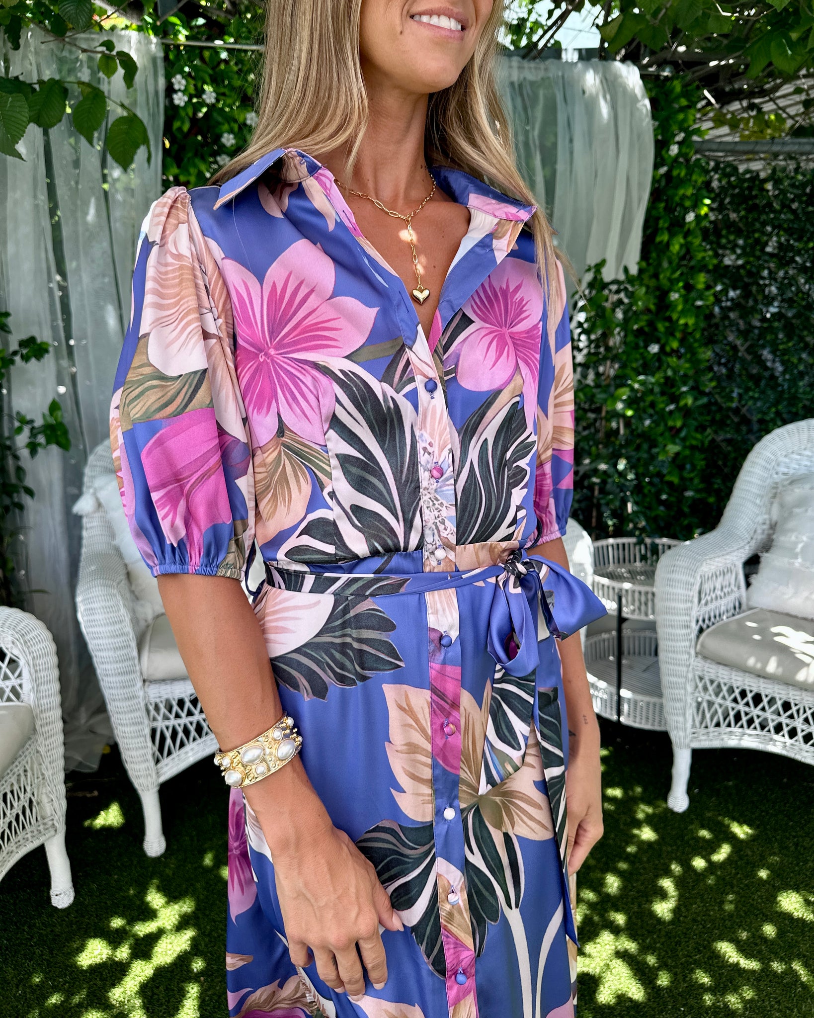 Perfect for garden parties, long lunches, or destination escapes, it’s a piece that feels elevated yet wonderfully wearable — simply add heels or slides and let the print do the talking.