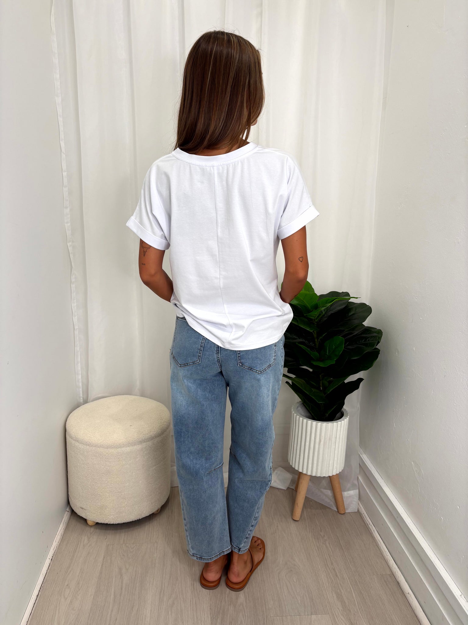 With its relaxed fit, rolled sleeves and classic crew neckline, this tee adds effortless style whether you’re dressing up your denim or adding a fun twist to your casual looks. Comfortable, lightweight and full of character — it’s the statement tee your wardrobe has been waiting for.
