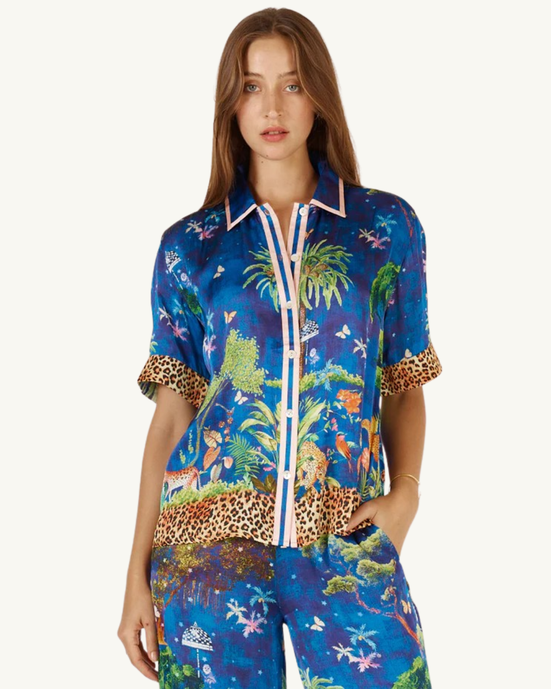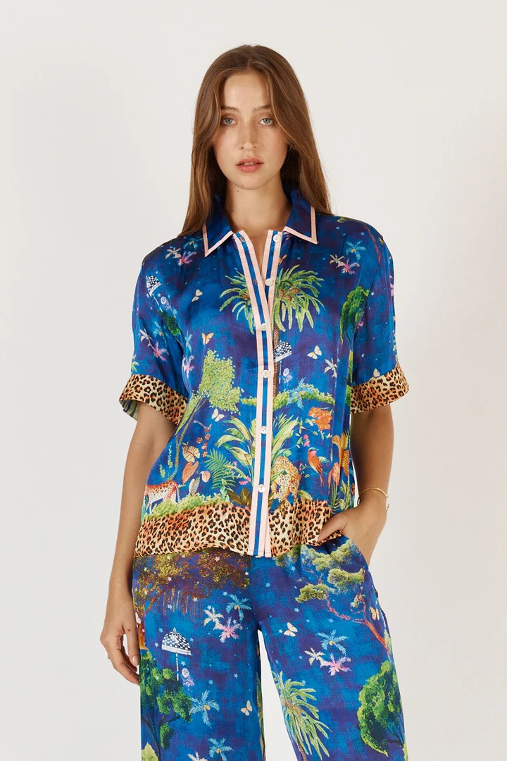 Make a striking style statement in the Mataram Shirt by Ruby Yaya — where tropicana meets pure fantasy.