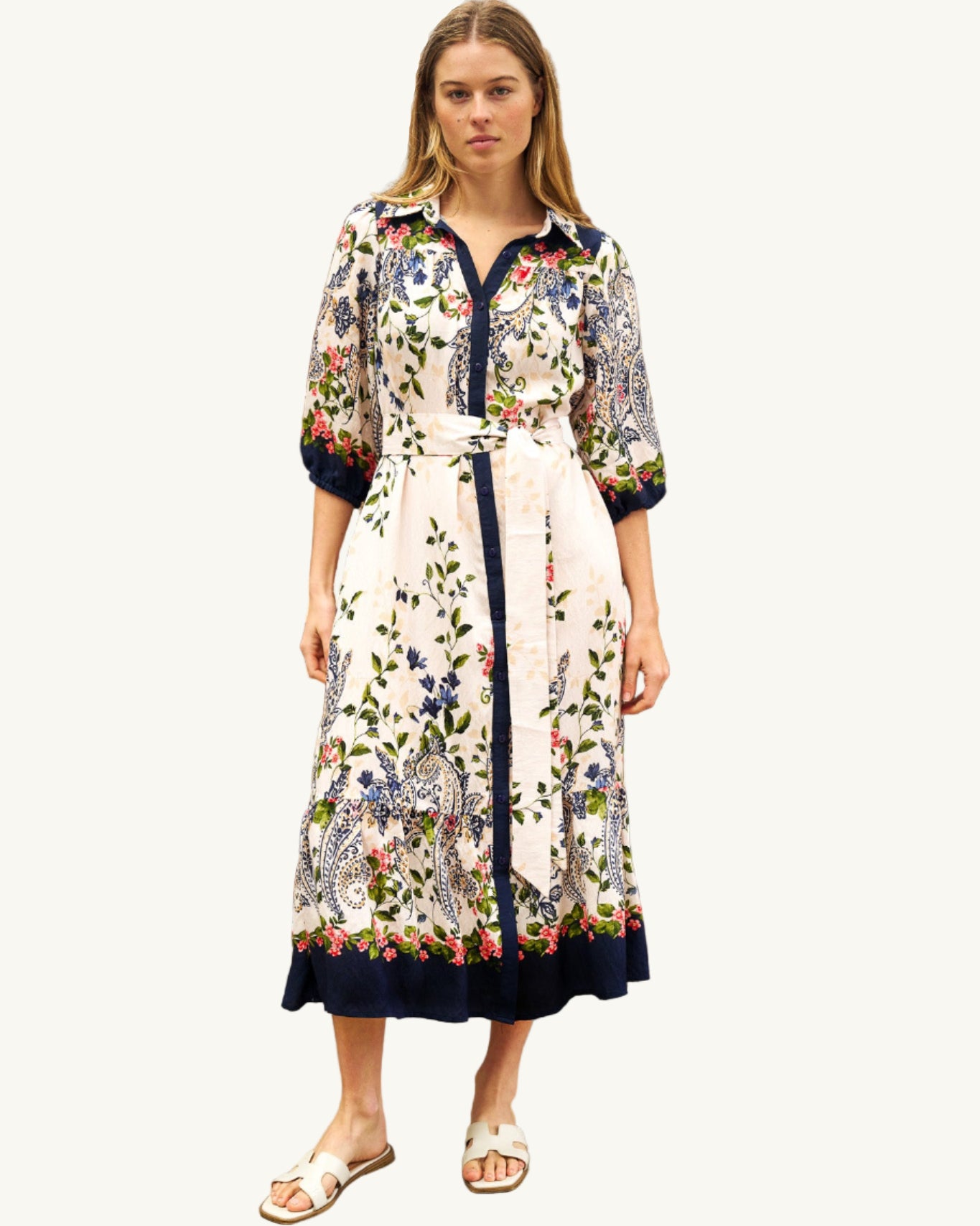 Featuring a statement floral print, contrast trim, and a flattering belted waist, The Celestia Midi Dress by Boho Australia is where timeless elegance meets modern romance.  This beautiul dress brings effortless sophistication to your every day style, making it perfect for garden parties, long lunches, or weekend strolls in the sun.